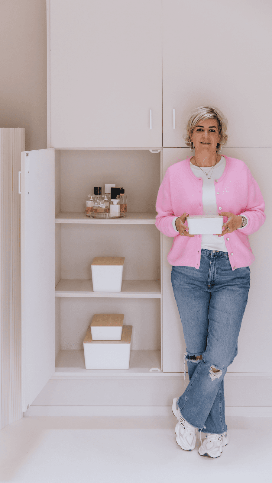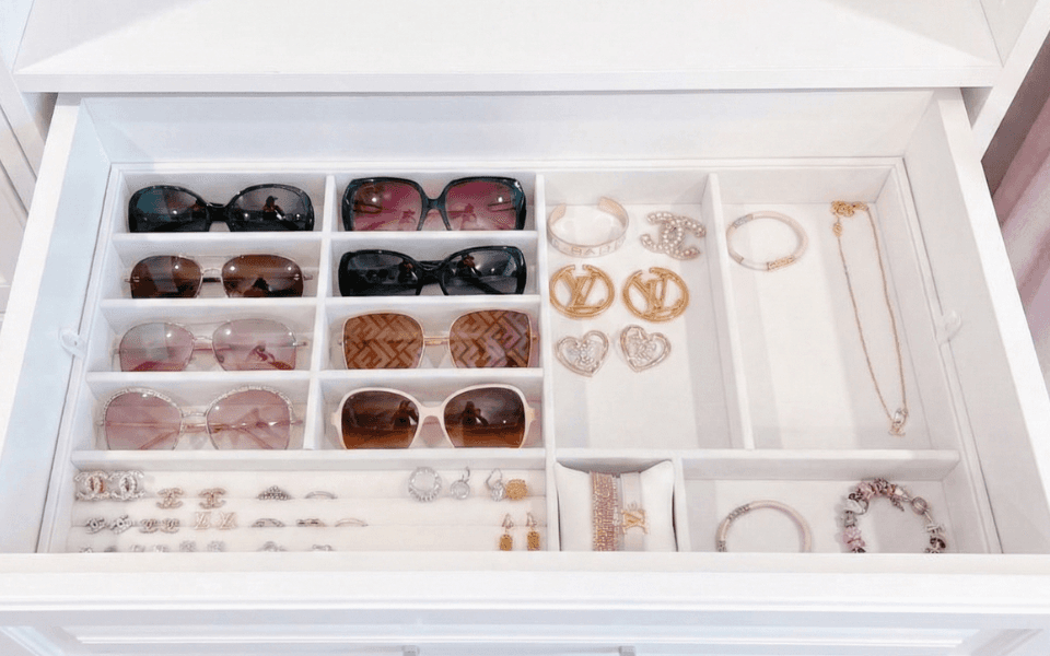 Sommige accesoires vragen net wat meer aandacht. Denk aan schoenen, tassen, sieraden of make-up. Ik sorteer zorgvuldig, maak slimme combinaties en richt in met lade verdelers of bakjes, zodat ieder item zijn eigen plek krijgt. Je ziet in één keer wat je bezit en kiest sneller. De kast voelt als een boutique in je eigen huis.
